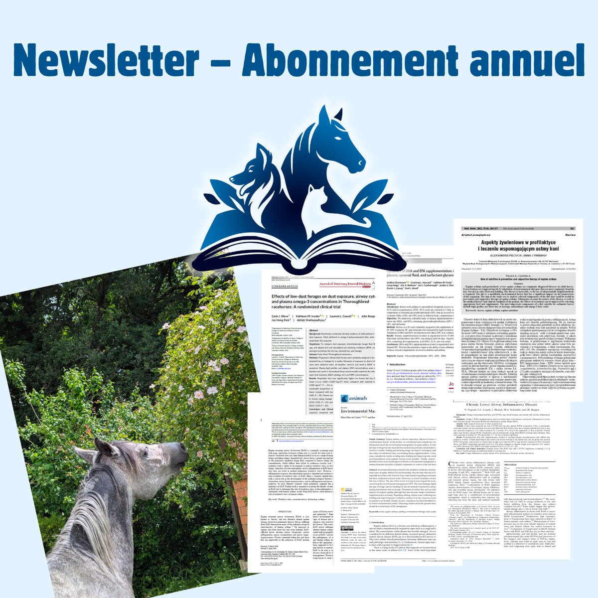 La newsletter représente un travail conséquent de recherche et d’analyse de la littérature scientifique, puis de vulgarisation et d’illustration pour vous permettre de mieux comprendre les sujets en vogue dans le secteur de la santé et du bien-être animal.